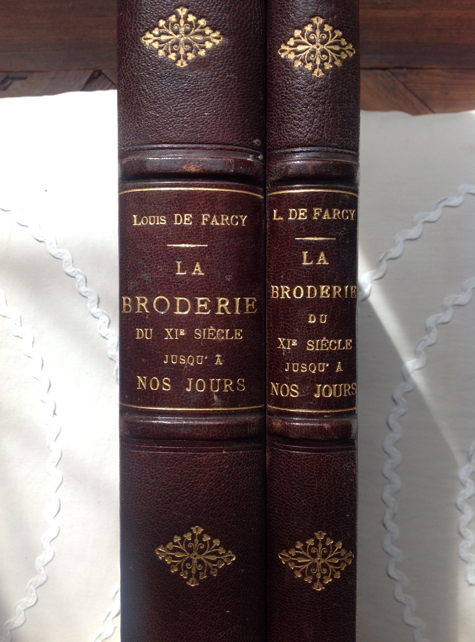 Farcy, Louis de. La Broderie du XIe siècle jusqu’à nos jours d’après les spécimens authentiques et les anciens Inventaires – Complet de Ses deux Suppléments (1900 et 1919). Angers: Belhomme, 1890. 39,50 x 56,5.