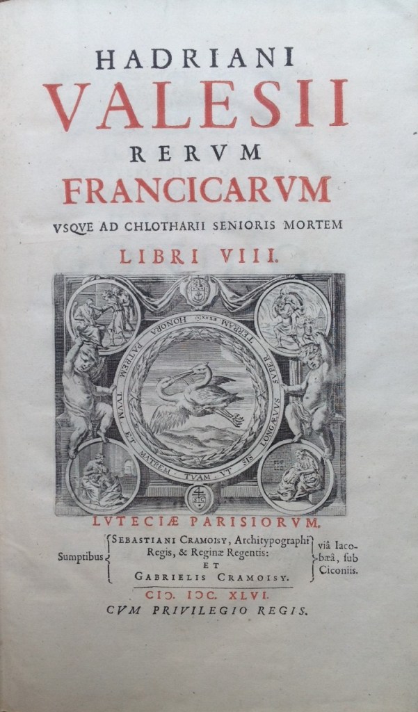 Valois, Adrien De. Hadriani Valesii Rerum Francicarum, Luteciae Parisiorum: Sebastiani Cramoisy et Gabrielis Cramoisy, 1646. Edition Originale. 23 x 35,8.