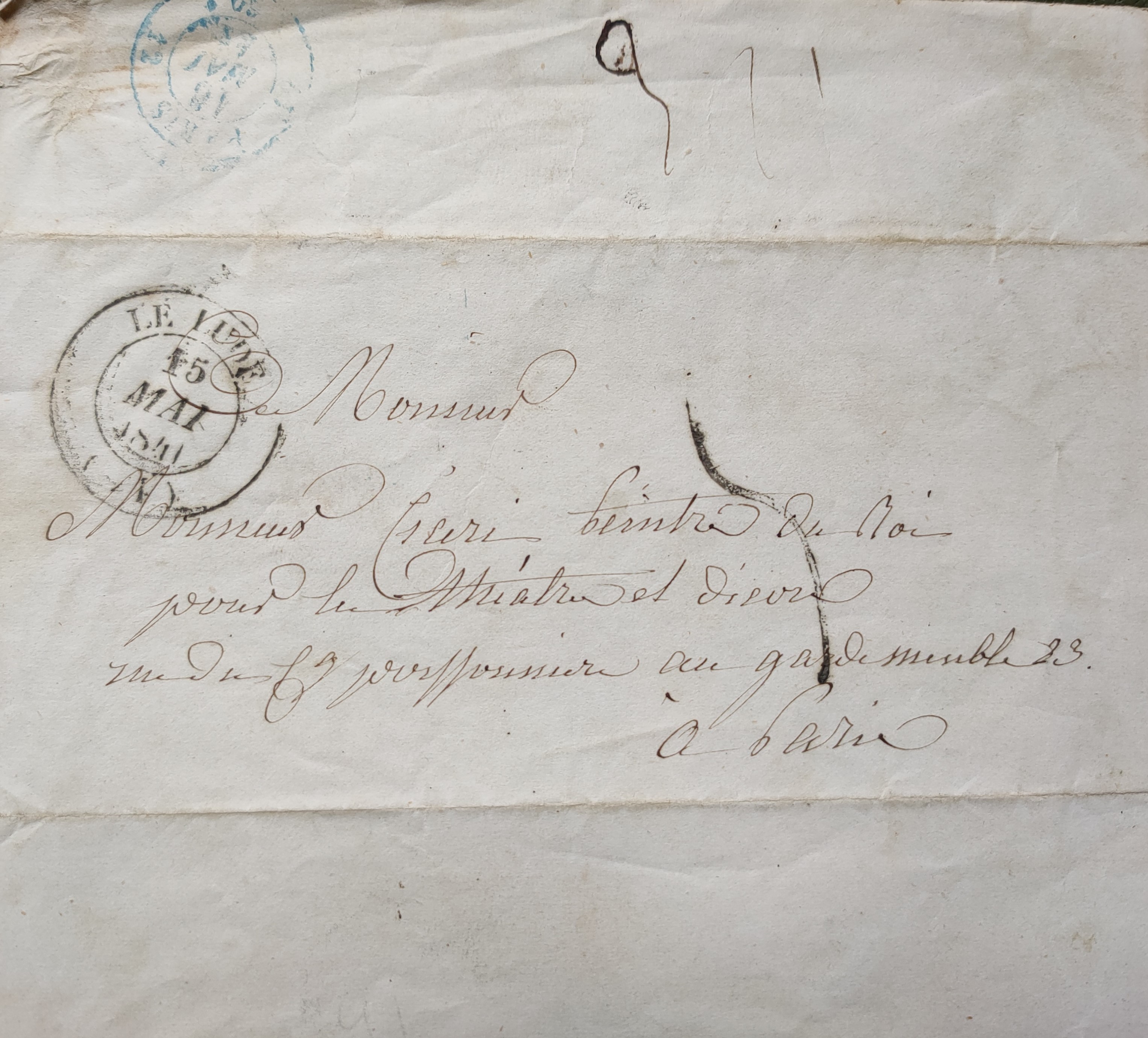 - Isabey, Jean-Baptiste (1767-1855, Peintre, Portraitiste et Décorateur). Lettre Autographe Signée Du Peintre Jean-Baptiste Isabey, Au Lude Le Vendredi 14 Mai 1841 à Monsieur Cicéri Peintre Du Roi Pour Les Théâtres et Décors Rue Du Fg Poissonnière Au Garde Meuble 23 à Paris –