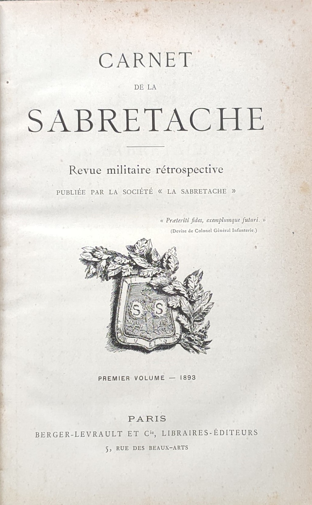 Carnet De La Sabretache – 1893 – 1969 – Collection Complète. Paris: La Sabretache – Leroy – Berger-Levrault, 1893.